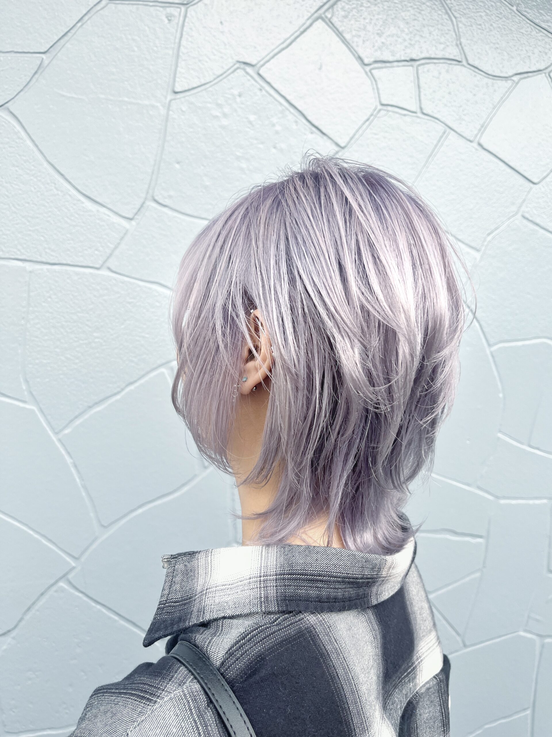 ブリーチベースの透明感に、淡いパープルをほんのり重ねることで