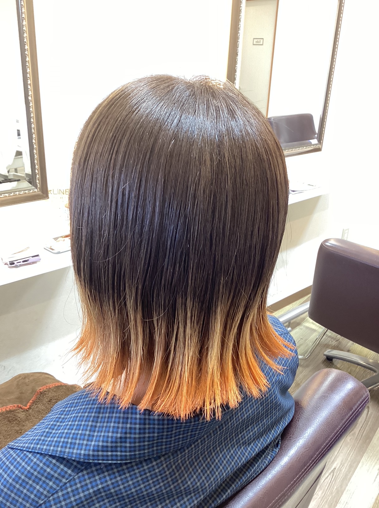毛先のみにブリーチを施し、グラデーションを作りながら毛先のみにオレンジをのせていきます^^