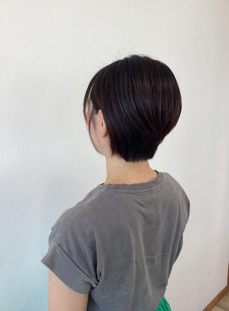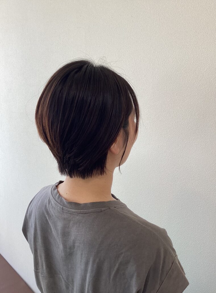 襟足をスッキリ切ることで、持ちを良くして長くショートスタイルが楽しめるようにしました。